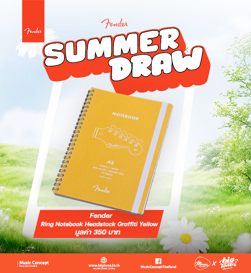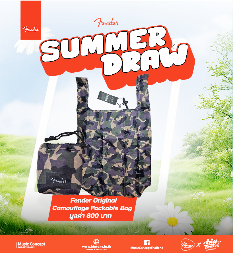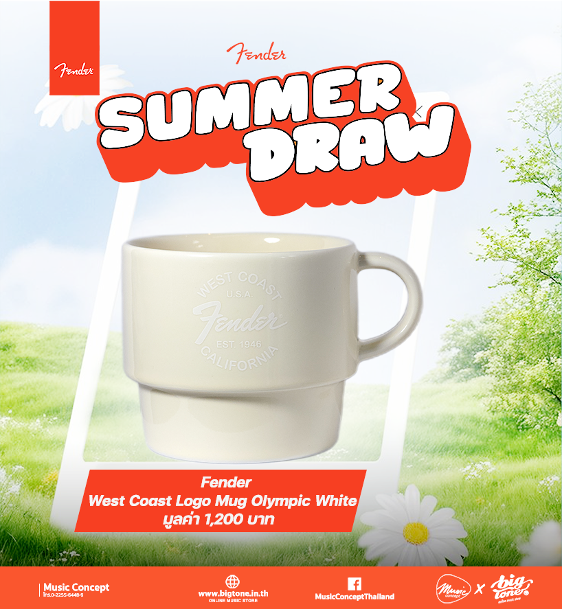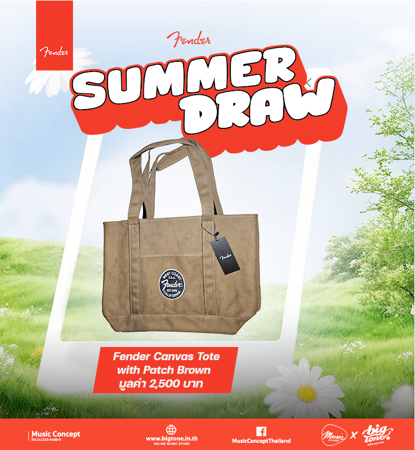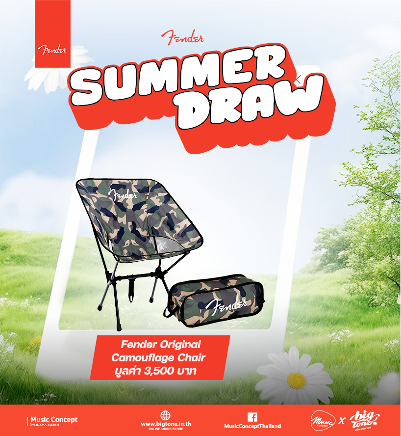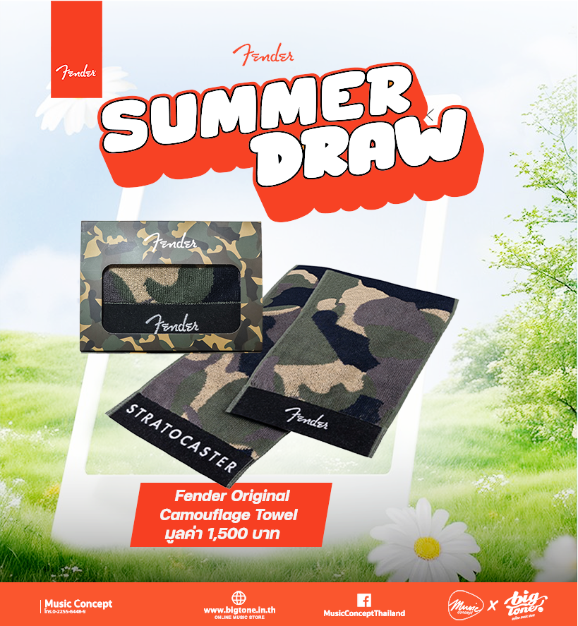 โปรต้อนรับลมร้อน จาก Fender เมื่อซื้อสินค้า Fender ครบ 5,000 บาทขึ้นไป มีสิทธิจับ Lucky Draw ลุ้นของที่ละลึกจาก Fender มูลค่ารวม 200,000 บาท