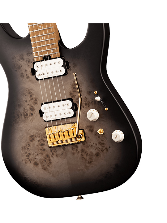 Charvel® turns modern high performance on its head with the new Pro-Mod DK24 HH 2PT CM Poplar Burl, a brazen instrument for the progressive guitarist searching for an unparalleled spectrum of sound.