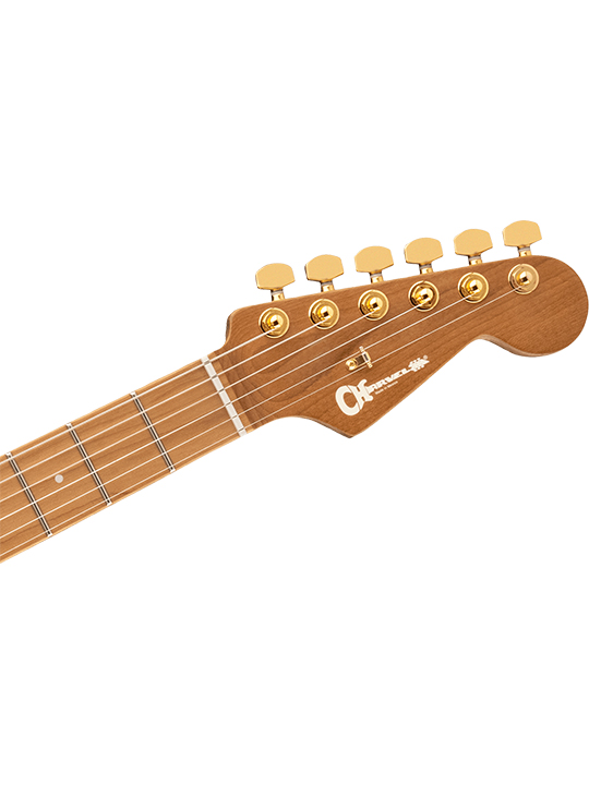 The bolt-on caramelized maple “speed” neck has graphite reinforcement, silky-smooth hand-rubbed satin urethane back finish, heel-mount truss rod adjustment wheel and Luminlay® side dots. Its 12”-16” compound radius caramelized maple fingerboard features comfortable rolled edges, 24 jumbo frets, 4mm pearloid dot inlays and Graph Tech® TUSQ® XL nut.