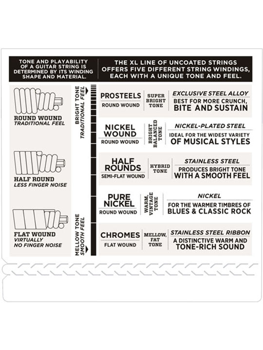 - -Round wound with nickelplated steel for a distinctive bright tone with clear fundamentals