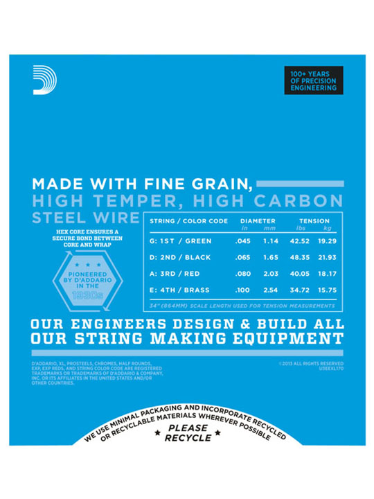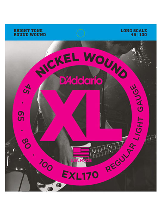 EXL170, D'Addario's best-selling bass set and the standard for most electric basses, offers the ideal combination of bright, booming tone and comfortable feel. The most versatile and universally appealing set for all playing styles. Fits long scale basses with a string scale length of up to 36 1/4 inches.