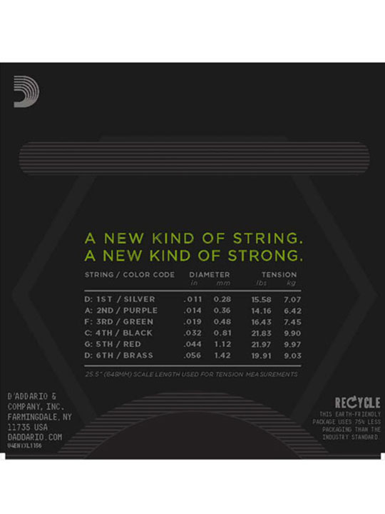 NYXL1156 optimally designed for tuning guitars down a whole step to D or for players who prefer a heavier string setup: Plain Steel .011, .014, .019, Nickel Wound .032, .044, .056