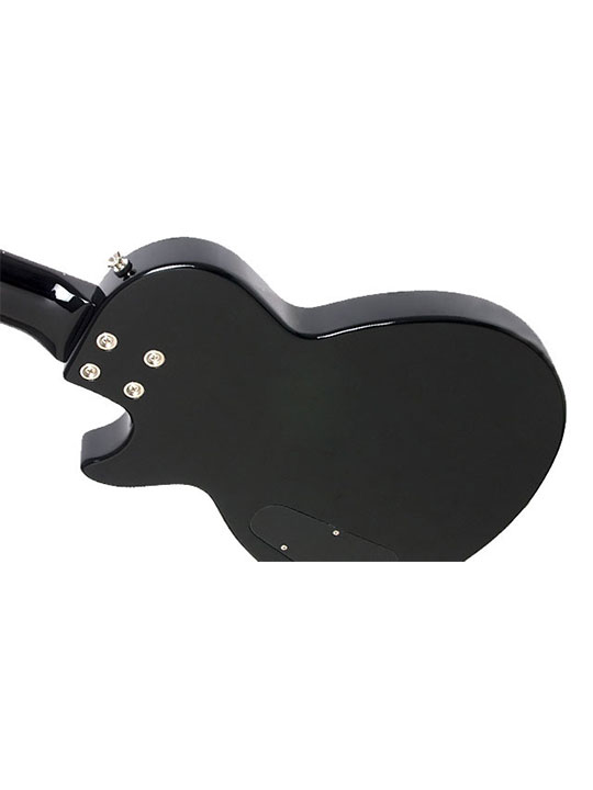 While the new LP-Express is still a true Les Paul at heart, Epiphone incorporated some unique design features to ensure that the guitar performs well for beginners as well as professionals looking for a travel guitar. While the body is made from Mahogany like most classic Les Pauls, the neck on the Express is Okoume as opposed to a traditional Mahogany neck. This gives the guitar a little more high-end “bite” or brighter tone which effectively offsets the slightly looser string tension due to the shorter scale length. Additionally, the fully-adjustable Epiphone FB-601 “fixed” bridge makes string changes a breeze. Finally, the neck is bolted in place securely using four recessed bolts set into a tapered heel making upper fret access easy and comfortable.