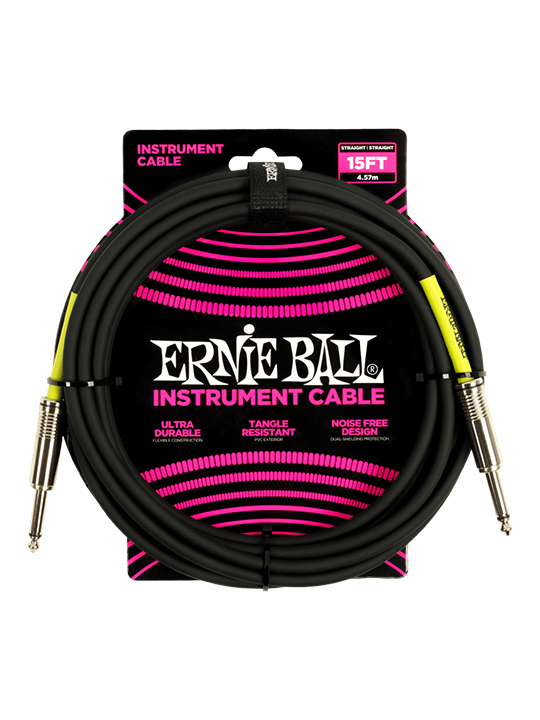 Ernie Ball instrument cables feature a high-quality design made with superior components that are built to last. Dual-conductors deliver reliably clear tone with crisp highs, tight mids, and rich harmonics. Multiple shielding materials preserve the signal with low handling noise, and the durable PVC jacket exterior ensures long-lasting performance. Cable length 15ft (4.57m).