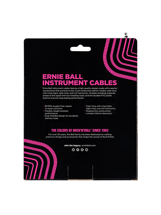 - Ernie Ball instrument cables feature a high-quality design made with superior components that are built to last. Dual-conductors deliver reliably clear tone with crisp highs, tight mids, and rich harmonics. Multiple shielding materials preserve the signal with low handling noise, and the durable PVC jacket exterior ensures long-lasting performance. Cable length 30ft (9.14m).