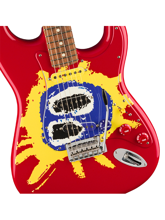 - The limited edition Screamadelica 30th Anniversary Stratocaster commemorates this pivotal recording with a one of kind all-over graphic of the stunning red, yellow and blue album art – including matching pickguard, pickup covers and knobs.