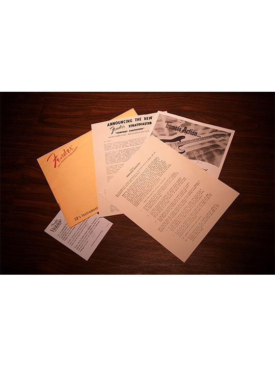 Special extras and accessories include a vintage-design single-stitch center-pocket tweed case; replica polishing cloth, cable, black leather strap and bridge cover; extra tremolo springs (two), and reproduction 1954 paperwork.
