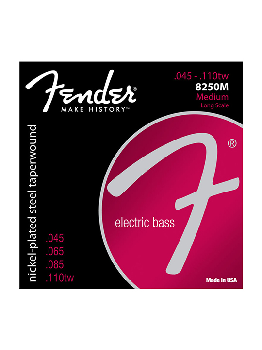Fender 8250 nickel-plated steel strings เป็นสายเหล็กชุบนิกเกิล ให้เสียงสูงและเสียงแบบไดนามิกของเหล็กที่ให้ความรู้สึกนุ่มนวลของนิกเกิล ยังรวมถึงการทำ taperwound ที่สาย E และ B เพื่อเพิ่มเสียงค้างยาวและเพื่อ intonation ที่ดี หากคุณกำลังมองหาชุดสายเพื่อรองรับสไตล์เพลง rock, funk และรูปแบบของเพลงอื่น ๆ ซึ่งสายเหล่านี้จะทำให้แน่ใจว่าเบสของคุณจะให้โทนเสียงที่ตอบสนองได้อย่างลงตัว