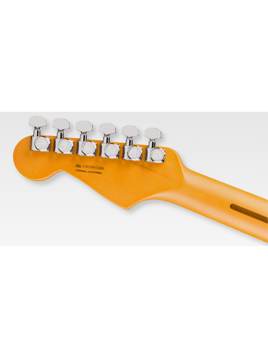 Featuring stainless steel saddles and a chamfered cold-rolled steel block, the American Ultra synchronized tremolo system provides superior tuning stability and enhanced tonal response. The convenient pop-in arm ensures precise tremolo action with customizable tension, delivering professional-grade performance with exceptional sustain and optimal string-to-string balance.