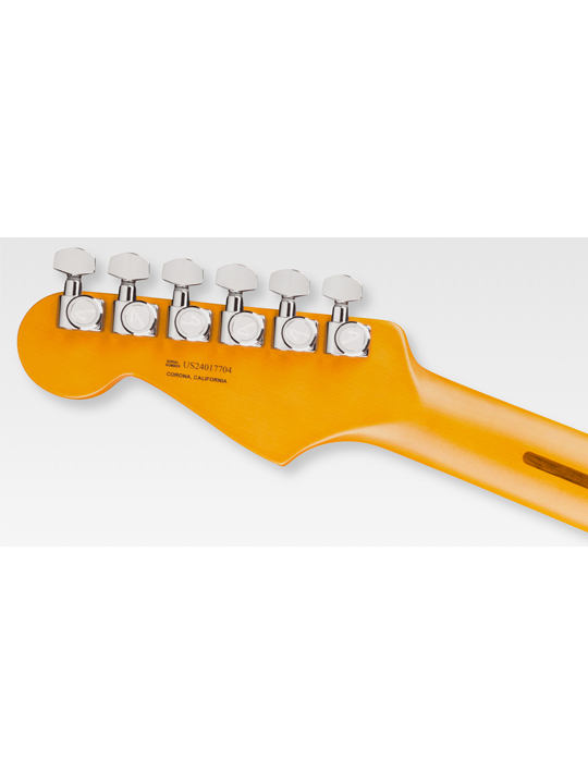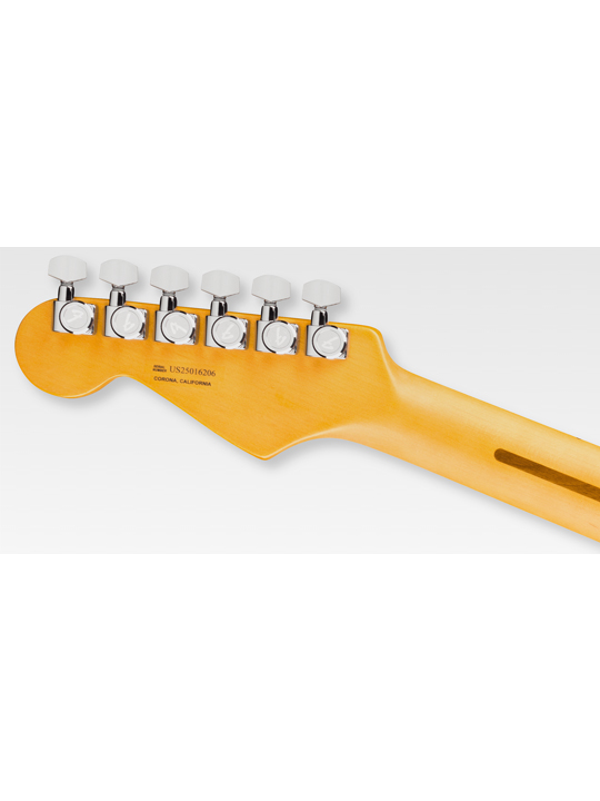 Featuring stainless steel saddles and a chamfered cold-rolled steel block, the American Ultra synchronized tremolo system provides superior tuning stability and enhanced tonal response. The convenient pop-in arm ensures precise tremolo action with customizable tension, delivering professional-grade performance with exceptional sustain and optimal string-to-string balance.