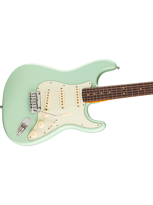 Under the hood, Pure Vintage ’61 Strat® deliver classic Fender tones, from sparkling cleans to rich, expressive leads. Performance hardware includes a precision-engineered 2-Point American Ultra synchronized tremolo with polished stainless steel block saddles, cold rolled steel block, and deluxe locking tuners for quick string changes and superior tuning stability.