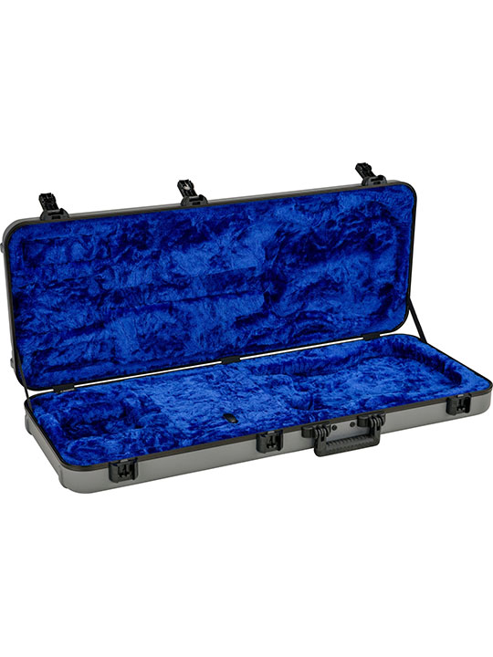 Sleek and stylish, the Inca Silver Deluxe Molded Case with Lake Placid Blue interior to transport and store you Stratocaster or Telecaster guitar designed specifically for your instrument. Combining advanced materials with a new nested stacking design and TSA-accepted locking center latch, this case will help your guitar arrive at its destination unharmed. From the rock-solid military-grade outer shell to the comfortable handle and high-grade plush interior lining, every element of this case has been engineered to create the ultimate in instrument protection. The large interior center pocket is the perfect place to stash accessories like picks, cable and straps, while helping to stabilize the neck during transport. Thanks to the rubberized feet on the hinged edge, you can enjoy additional stability—no more worrying about your case tipping over when you set it down.