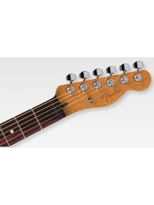 The mahogany Telecaster neck with rosewood fingerboard offers a familiar playing feel and adds warmth to the guitar’s tone.