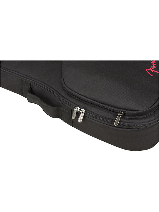 Fender's FU610 Ukulele Gig Bag is a stylish and secure way to keep your uke safe while traveling. Featuring the iconic asymmetrical Fender shape, its durable outer layer is constructed of tough 600 Denier polyester that protects against impacts while avoiding ripping and tearing. Its interior is filled with 10mm padding lined with soft touch microfiber that keeps your instrument secure while preventing finish damage. The FU610 gig bag also includes an ID tag holder, reverse water-resistant zipper with custom ergonomic pulls, recessed grab handle, comfortable two-piece handle and ergonomic backpack straps with easily adjustable ladder lock buckles, so you can comfortably carry your instrument without unnecessary physical strain.