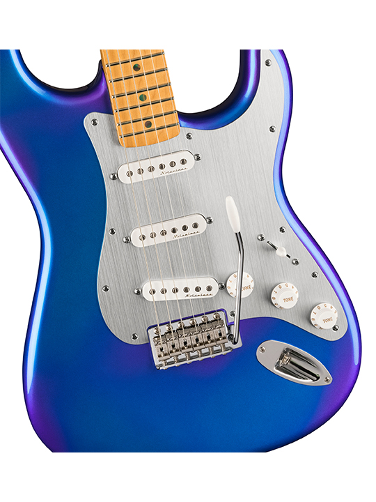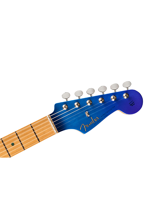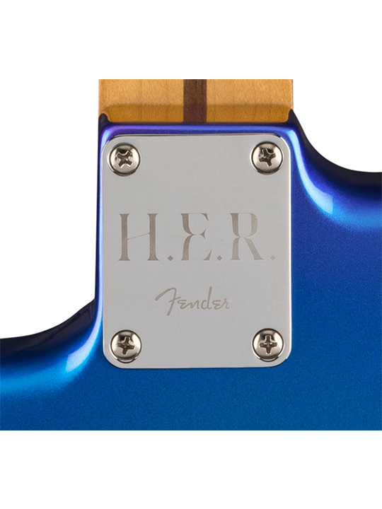 The H.E.R. Stratocaster® makes a statement as bold as the artist who inspired it. Finished in dazzling Blue Marlin and featuring a mid-‘60s “C” shape maple neck, Vintage Noiseless™ pickups and an anodized aluminum pickguard, this guitar delivers effortless playability, classic Strat® tone and extraordinary good looks.
