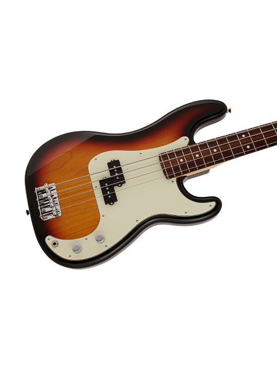 The Hybrid II Precision Bass® is equipped with a new hybrid II Custom Voiced Single Coil pickup with staggered pole pieces on the well-established alder body, and a sustain block under the vintage-style bridge. A vintage-style tuner, satin-finish neck, Modern "C" shape, 9.5-inch radius fingerboard and narrow tall frets provide smooth playability.