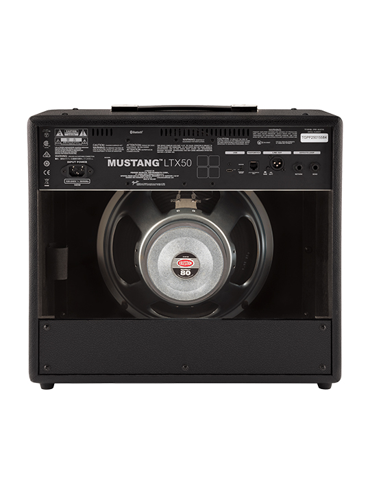 Mustang® LTX 50 is ideal for practice or performance with a 12" Celestion® G12P-80 speaker and an optional gig-ready 5-button footswitch. Onboard Bluetooth® allows you to jam along with your favorite songs as well as create, edit, download and share presets using the Fender TONE® app.