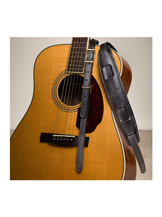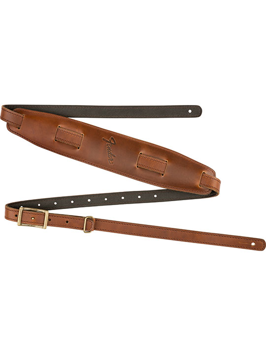 - Featuring smooth, premium top leather with a soft padded leather backing, the Mustang™ saddle strap is a modern interpretation of our classic vintage Fender design. Full-grain, rich leather undertones ensure this strap only gets better with time while the fixed brass metal keeper secures your straps tail so it doesn’t hang once adjusted. Available in both standard and long lengths to fit players of any stature. Long version: 47"-62".