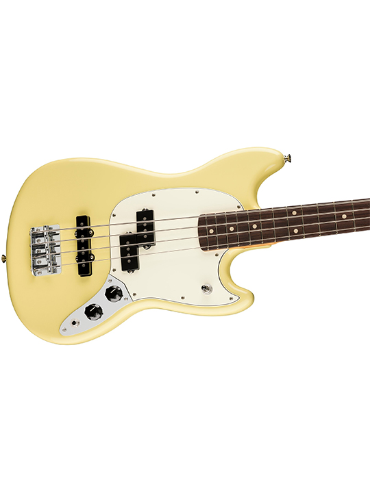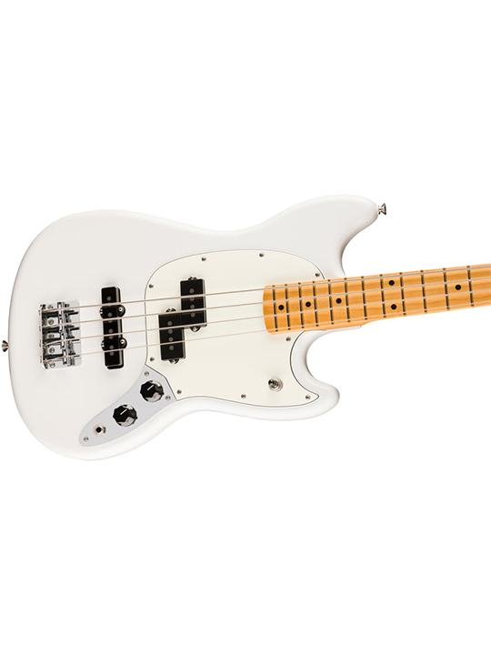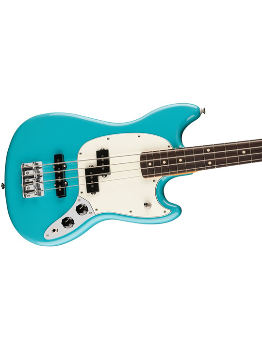 The Player II Mustang® Bass PJ radiates timeless Fender charm, but under the hood, it's primed for today's players. Everything about the neck is designed for fast and fluid playability, from the Modern “C”-profile with silky satin urethane finish on the back to the comfy 9.5”-radius slab rosewood or maple fingerboard with smooth rolled edges and 19 medium jumbo frets. A classic alder body is available in both timeless Fender finishes and never-before-seen colors unearthed from the archives. Player Series Alnico V Split-Coil P bass® and Single-Coil J bass® pickups offer sweet highs, growling mids and seismic lows that elevate any genre. The 3-way toggle switch lets you easily dial in everything this versatile pickup set has to offer, while an adjustable 4-saddle bridge, single-groove steel saddles and open-gear tuners ensure precise tuning stability for the flexibility to explore endless sonic possibilities.