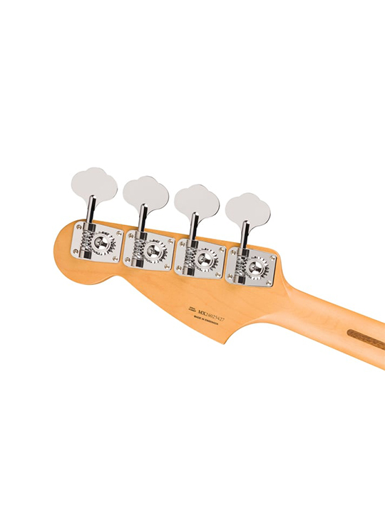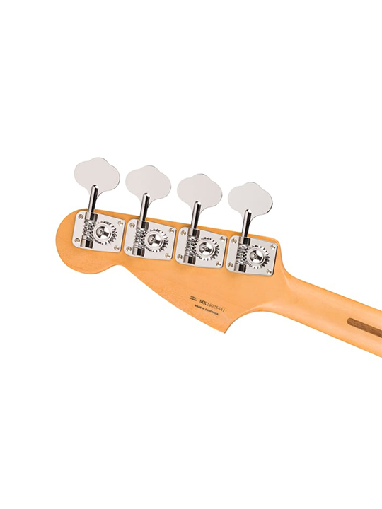 กีต้าร์เบส Player II Mustang® Bass PJ มีเสน่ห์เหนือกาลเวลาของ Fender แต่ภายในตัวกีต้าร์นั้นได้รับการออกแบบมาเพื่อให้ผู้เล่นเล่นได้ง่ายขึ้น ตั้งแต่คอกีต้าร์แบบ Modern “C” พร้อมการเคลือบยูรีเทนแบบซาตินที่นุ่มนวลที่ด้านหลัง ไปจนถึงฟิงเกอร์บอร์ดไม้โรสวูดหรือเมเปิ้ลที่มีรัศมี 9.5 นิ้ว ที่แสนสบายพร้อมขอบม้วนเรียบและเฟร็ตแบบ Medium Jumbo จำนวน 19 เฟร็ต ตัวกีต้าร์ทำจากไม้ Alder แบบคลาสสิก ปิ๊กอัพ Player Series Alnico V Split-Coil P bass® และ Single-Coil J bass® ให้เสียงให้เสียงที่ไพเราะ สวิตช์แบบ 3 ทางช่วยให้คุณปรับแต่งทุกอย่างที่ชุดปิ๊กอัพอเนกประสงค์นี้มีได้อย่างง่ายดาย ในขณะที่บริดจ์ 4 แซดเดิลที่ปรับได้ แซดเดิลเหล็กร่องเดียว และจูนเนอร์แบบเกียร์เปิดช่วยให้ปรับจูนได้อย่างแม่นยำ