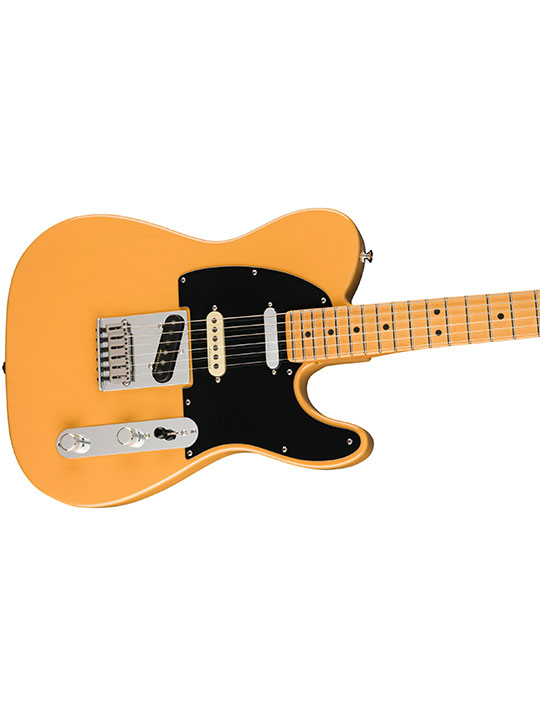 The modern Tele bridge with 6 steel block saddles delivers superior intonation, sustain, and a touch of brightness.
