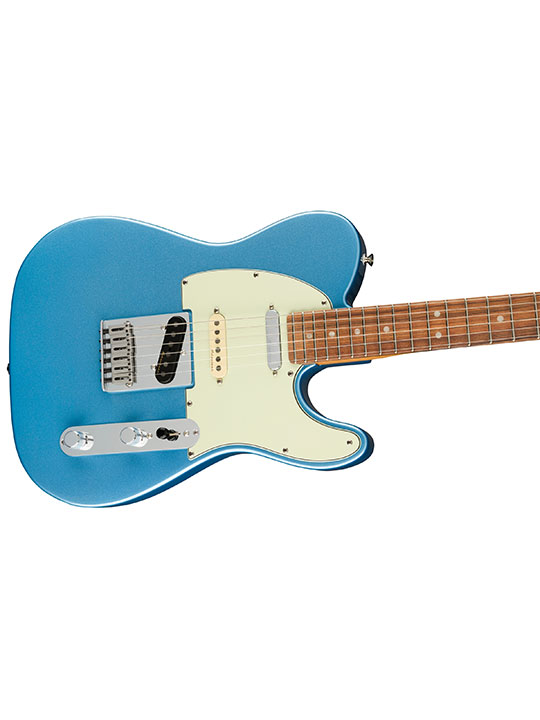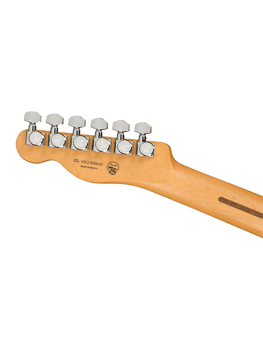 Powered by a set of Player Plus Noiseless pickups, the Player Plus Nashville Tele® delivers warm, sweet Tele® twang – as well as Strat® in-between tones – without hum. A push-pull switch on the tone control engages the neck pickup in switch positions 1 & 2 for two additional tones. The silky satin Modern “C” Player Plus Tele® neck fits your hand like a glove, with smooth rolled edges for supreme comfort. The 12” radius fingerboard and 22 medium jumbo frets facilitate fluid leads and choke free bends. A modern 6-saddle Tele bridge with block steel saddles adds a touch of brightness while providing precise intonation and the locking tuners provide rock-solid tuning and make string changes quick and easy.