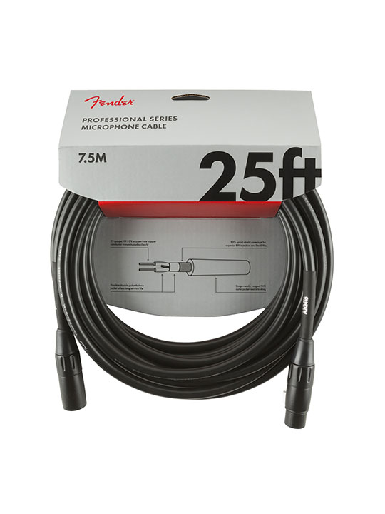 Fender Professional Series Microphone Cable, 25' Straight/Straight, Black