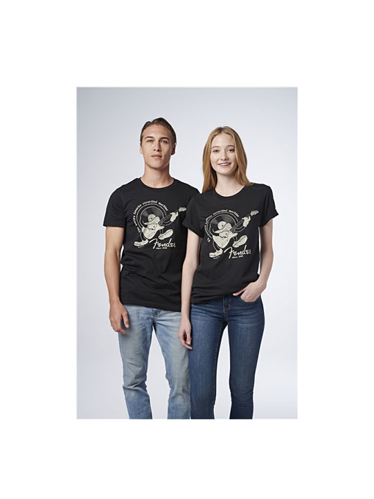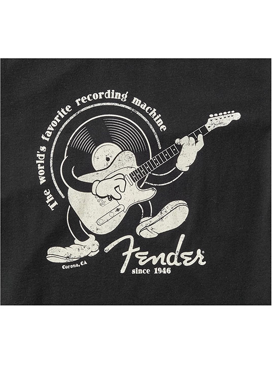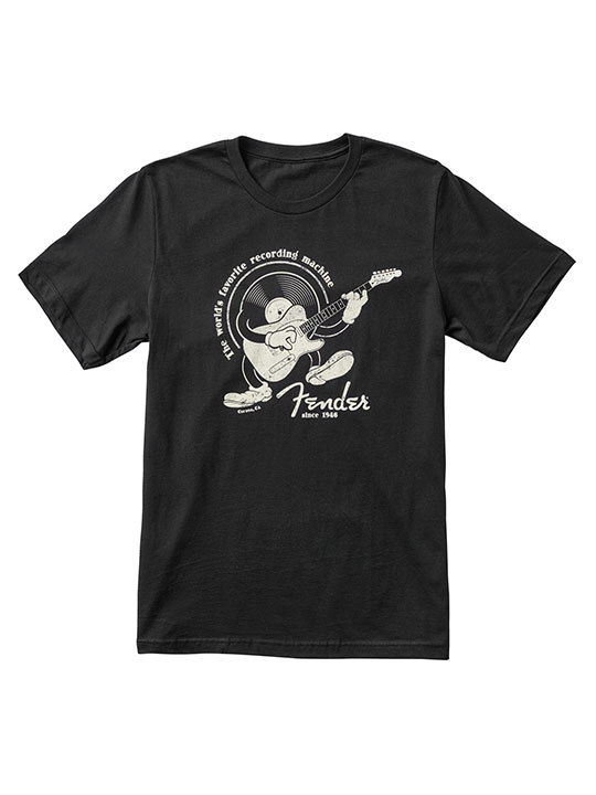 - Featured in music of all varieties since 1946, Fender instruments have been a benchmark and a staple. Applaud the world’s favorite recording machine in this tee, displaying a vinyl record playing the classic Tele®.