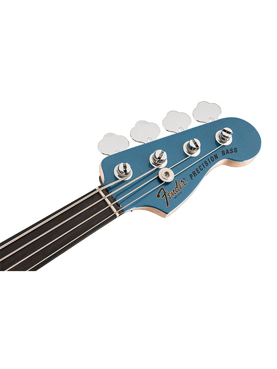 The E-string tuning machine on the Tony Franklin Fretless Precision Bass features a Hipshot® drop-D mechanism that lets you de-tune quickly and accurately with the mere flip of a lever.