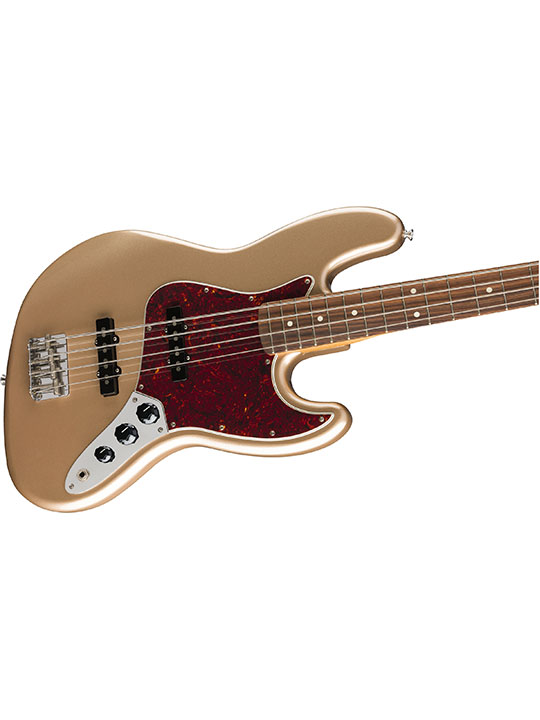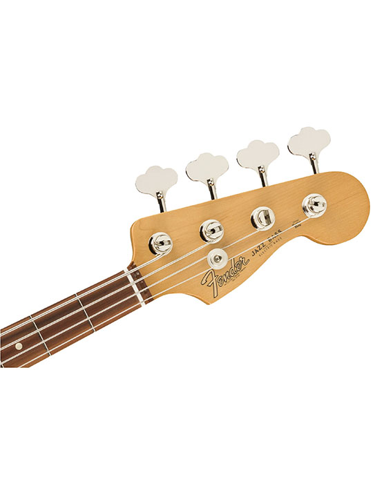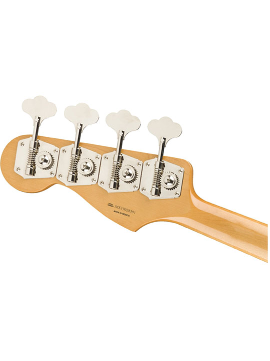 For authentic, original-era tone we re-voiced the pair of single-coil Jazz Bass pickups to sound more like the originals. Gritty and growling, they have the tone that made the J Bass popular. The “Mid '60s C”-shaped neck has a 7.25”-radius fingerboard with 20 vintage-style frets for classic playing feel. A vintage-style, 4-saddle bridge with threaded saddles and reverse, open-gear tuning machines provide original-era aesthetics, rock-solid performance and tuning stability. Other features include 34” scale length, chrome hardware and 4-bolt neck plate. Includes a deluxe gig bag.