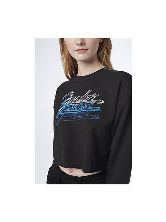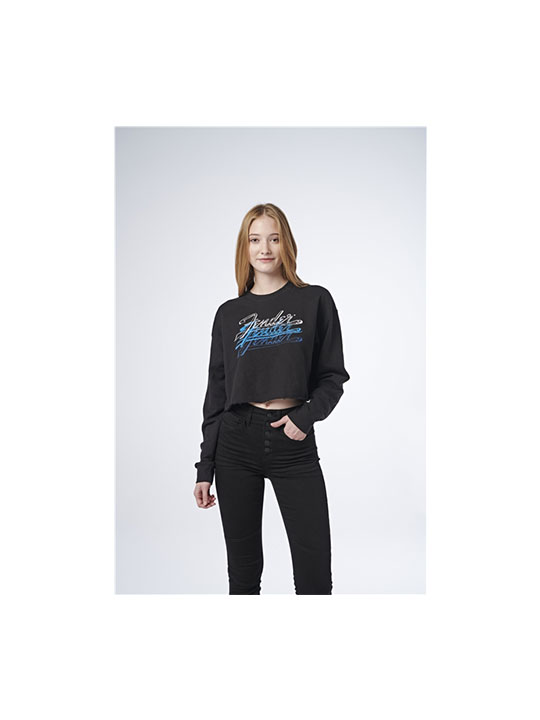 - Keep warm and let loose in this fun, retro-stylized Fender logo crop pullover.