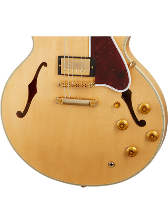 What could be better than the legendary ES-335? The ES-355! The ES-355 starts with all the features that make the ES-335 iconic - the feedback-resistant semi-hollowbody construction, the two humbucking pickups with individual volume and tone controls, the legendary sonic versatility and exceptional playability - and kicks it into overdrive with an ebony fretboard that's adorned with 50s pattern mother of pearl block inlays and 22 authentic medium jumbo frets. A split diamond headstock inlay, multi-ply binding, and gold hardware further reinforce the fact that the ES-355 is the top of the line ES™ model. This expertly crafted Custom Shop rendition's attention to detail makes it an outstanding recreation of the legendary and highly-prized 1959 ES-355. A five latch Lifton™ case is also included.