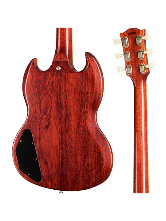 Regardless of the fact that George Harrison and Eric Clapton rocked a '64 SG™ Standard, that model year was clearly a standout for SGs in general. The clunky side-pull vibrato had been replaced by the dependable Maestro Vibrola. The neck profiles had increased in size, resembling the profile found on 1959 Les Pauls™. And the balance, playability and look of the SG seemed to come into its own. For all those reasons, the Gibson Custom Shop is proud to present the newest member of the Historic Reissue family -- the 1964 SG Standard Reissue. Along with the Maestro™ Vibrola and chunky neck profile, it has all the hyper-accurate vintage specs one could possibly want -- original construction methods, a real red aniline dye finish, chemically-recreated plastics, replica electronics, and more. The result is perhaps the best looking, feeling and sounding SG Reissue yet.