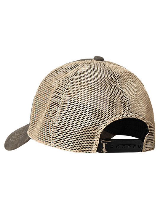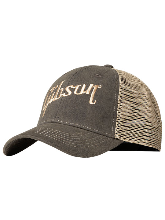 - This Gibson Logo denim ballcap features a 1D embroidered logo on semi-structured front panels with an unstructured mesh back and Adjustable snapback. One size fits most.