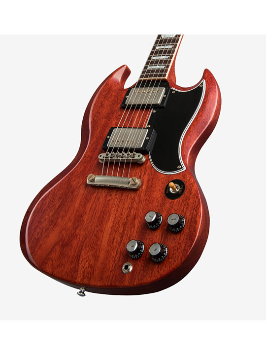 A 1960s SG has been the favorite of some of the most guitarists players ever...Angus Young, Tony Iommi, Robby Krieger, George Harrison, Dickey Betts, Gary Rossington, and Eric Clapton, to name a few. The SG's devilish points and curves, blistering humbucker tone and fast-playing neck help to make it one of the most coveted and revered 1960s Gibson models. This 2018 Gibson Custom Shop Historic '61 SG Standard model continues the legendary magic of the originals with all solid woods, historic hide-glue construction methods, the finest vintage replica parts and materials avaiable and the instantly-recognizable, powerful tone of pure rock 'n roll. Available in Gloss or VOS (vintage patina, shown) finishes. Left-handed models available as well.