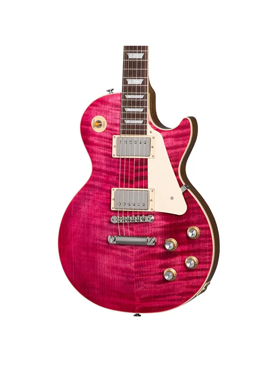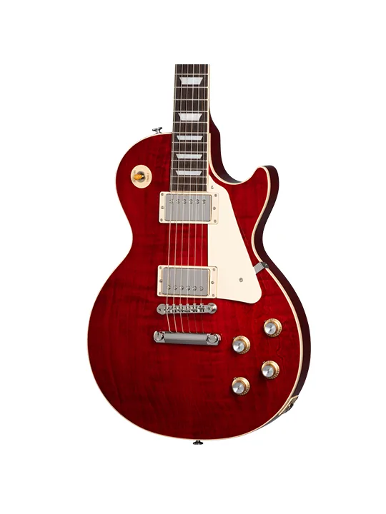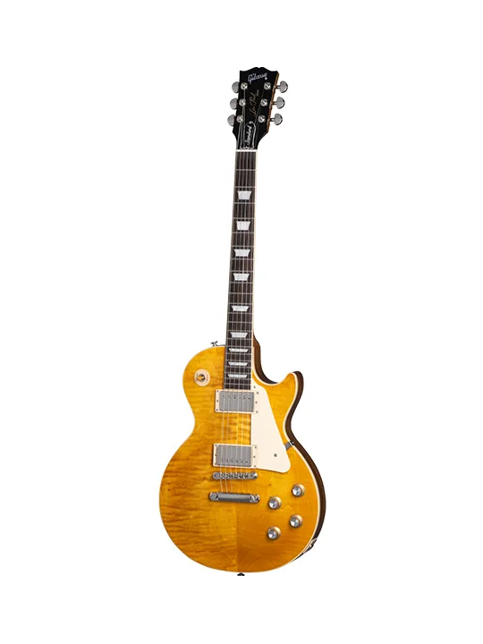 The Les Paul™ Standard 60s Figured Top returns to the classic design that made it relevant, played, and loved – shaping sound across generations and genres of music. It pays tribute to Gibson's Golden Era of Innovation and brings authenticity back to life. The Les Paul Standard 60s Figured Top has a solid mahogany body with an AA figured maple top visible beneath the new head-turning translucent custom color nitrocellulose lacquer finish. The mahogany neck has a 60s-style SlimTaper™ profile and a rosewood fingerboard with trapezoid inlays. The Les Paul Standard 60s Figured Top is equipped with a classic ABR-1 Tune-O-Matic™ bridge, aluminum Stop Bar tailpiece, Grover® Rotomatic® "Kidney" tuners, and gold Top Hat knobs with silver reflectors. The 60s Burstbucker™ pickups are loaded with Alnico 5 magnets and wired to audio taper potentiometers and Orange Drop® capacitors. A hardshell case is also included.