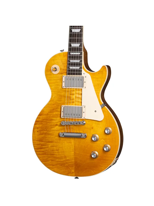 Les Paul Standard 60s Figured Top กลับมาสู่ดีไซน์คลาสสิก และเป็นที่ชื่นชอบ โดยเป็นการยกย่องให้กับยุคทองแห่งนวัตกรรมของ Gibson และนำความแท้จริงกลับมามีชีวิตอีกครั้ง ตัวกีต้าร์ Les Paul Standard 60s Figured Top มีตัวกีต้าร์ทำจากไม้มะฮอกกานีเนื้อแข็ง พร้อมด้วยไม้เมเปิ้ลลายแบบ AA ที่ด้านบน มองเห็นได้ผ่านข้างใต้การเคลือบแล็กเกอร์ไนโตรเซลลูโลส คอไม้มะฮอกกานีมีรูปทรง SlimTaper สไตล์ยุค 60 และฟิงเกอร์บอร์ดไม้โรสวูดพร้อมอินเลย์สี่เหลี่ยมคางหมู Les Paul Standard 60s Figured มาพร้อมกับปิ๊กอัพ 60s Burstbucker พร้อมด้วยแม่เหล็ก Alnico 5 อีกทั้งฮาร์ดแวร์คุณภาพที่ช่วยให้คงความคลาสสิคได้อย่างครบถ้วน