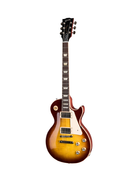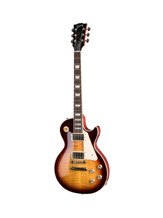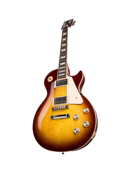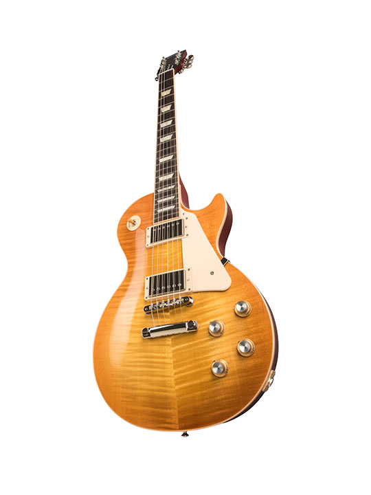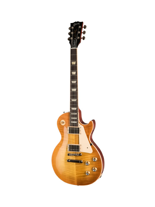 The new Les Paul Standard returns to the classic design that made it relevant, played and loved -- shaping sound across generations and genres of music. It pays tribute to Gibson's Golden Era of innovation and brings authenticity back to life. The Les Paul Standard 60's has a solid mahogany body with an AA figured maple top, and a slim taper 60's-style mahogany neck with a rosewood fingerboard and trapezoid inlays. It's equipped with a classic-style Tune-O-Matic bridge, aluminum stop bar tailpiece, Grover Rotomatic "Kidney" tuners, and gold top hat knobs with silver reflectors. The Burstbucker 61R (neck) Burstbucker 61T (bridge) pickups are loaded with AlNiCo V magnets, audio taper potentiometers and orange drop capacitors.