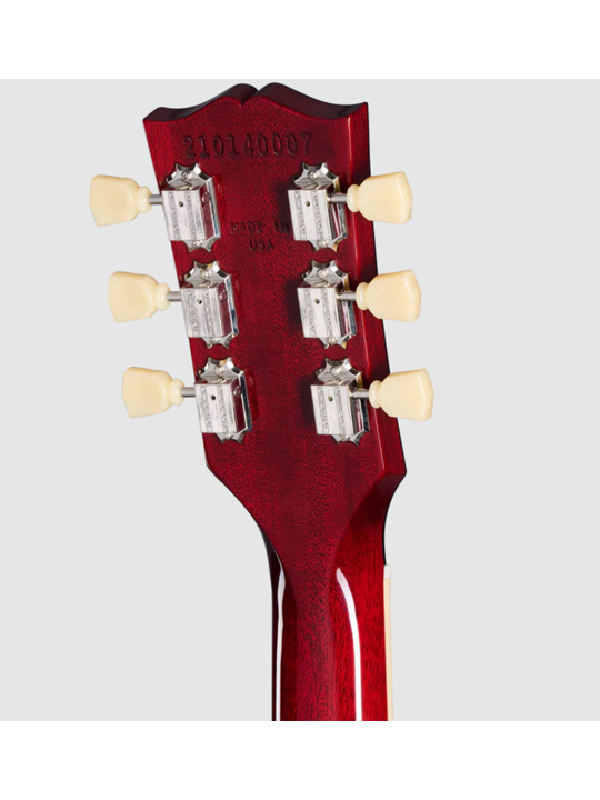 Now, the Les Paul Studio has been refreshed and is better and more versatile than ever. It features an Ultra Modern weight-relieved mahogany body, making it lighter and more comfortable to play, no matter how long the gig or jam session runs. The carved, plain maple cap adds brightness and definition to the overall tone and combines perfectly with the warmth and midrange punch from the mahogany body for that legendary Les Paul sound that has been featured on countless hit recordings and on concert stages worldwide. The glued-in mahogany neck provides rock-solid coupling between the neck and body for increased resonance and sustain. The neck features a traditional heel and a fast-playing SlimTaper™ profile, and it is capped with a bound rosewood fretboard that is equipped with acrylic trapezoid inlays and 22 medium jumbo frets. The 12” fretboard radius makes both rhythm chording and lead string bending equally effortless, and you’re going to love how this instrument feels in your hands. The Vintage Deluxe tuners with Keystone buttons add to the guitar’s classic visual appeal, and together with the fully adjustable aluminum Nashville Tune-O-Matic™ bridge, lightweight aluminum Stop Bar tailpiece, and Graph Tech® nut, help to keep the tuning stability nice and solid so you can spend more time playing and less time tuning.