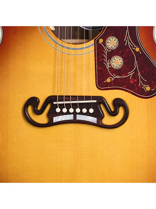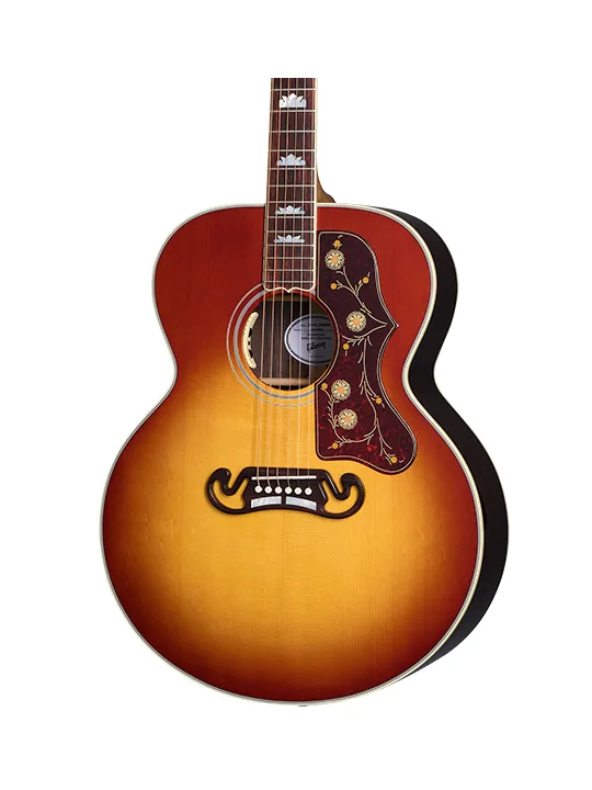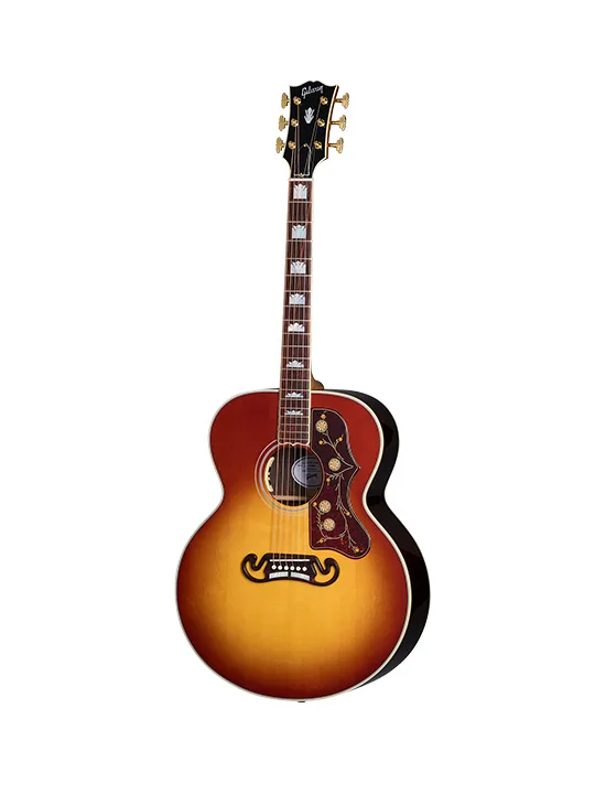 The Gibson SJ-200 is the world’s most famous acoustic guitar and well deserves its designation as the “King of the Flat-Tops.” Often made with a maple back and sides, the earliest examples were instead made with rosewood bodies. Now Gibson is proud to release the SJ-200 Standard Rosewood, bringing rosewood back to this highly acclaimed and cherished model. In addition to the rosewood back and sides, it features a Sitka spruce top, a mahogany neck with a comfortable round profile and a rosewood fretboard with graduated crown mother-of-pearl inlays, a two-bar moustache bridge, TUSQ® bridge pins, saddle, and nut, and gold Grover® Imperial™ tuners. It also comes equipped with the L.R. Baggs™ Anthem active under-saddle pickup and microphone system for superb studio-quality sound when plugged in, whether you’re recording or playing live. Also available in left-handed versions, a Gibson hardshell case is included.