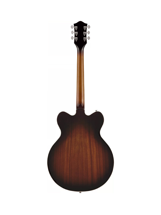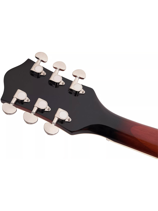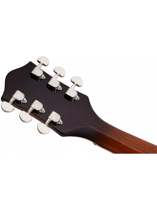Constructed with a lightweight spruce center block that spans the length of the mahogany body, the G2622-P90 fortifies the arched top and effectively eliminates unwanted feedback. This design ensures a volume-friendly performance, making it an ideal choice for modern stages. The guitar’s sonic prowess is expertly managed by a traditional control layout, featuring neck and bridge pickup volume controls, a master tone control, a master volume control, and three-way pickup switching.