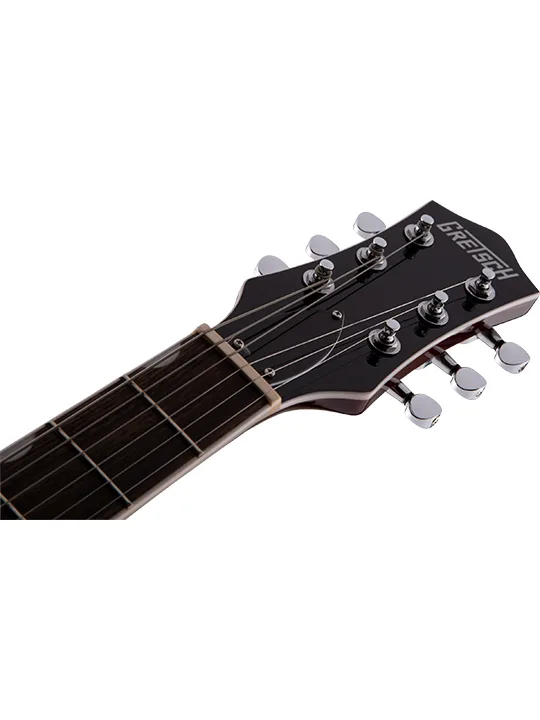 Black Top Filter'Tron pickups amplify and accentuate the Electromatic Jet FT's chambered body to produce a wide, balanced and transparent tone. Loud and punchy, this Jet sounds out with remarkable definition at any level of gain. Together, the body and pickups thunder with full, responsive lows and mids with a high end that sparkles without spikes.