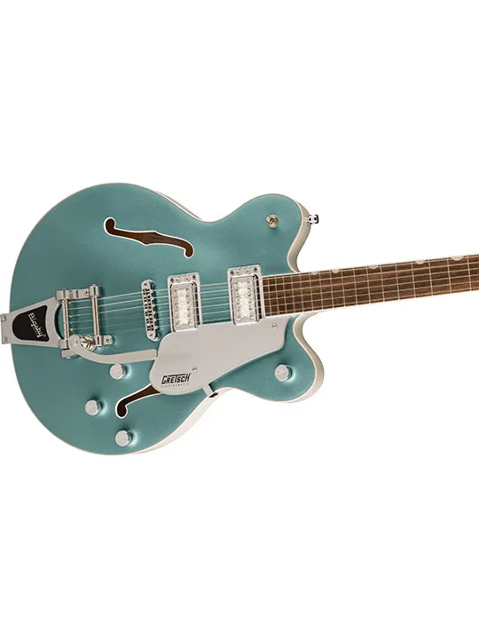 The G5622T-140 features a double-cutaway maple body with chambered spruce center block for dynamic resonance, high gain power and lightweight comfort.