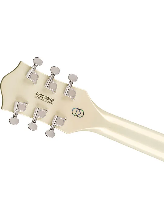 The G5622T-140 features a striking 2-Tone Stone Platinum over Pearl Platinum finish with matching pickguard and pickup bezels, chrome hardware, and a matching headstock with commemorative 140th Anniversary head plaque.