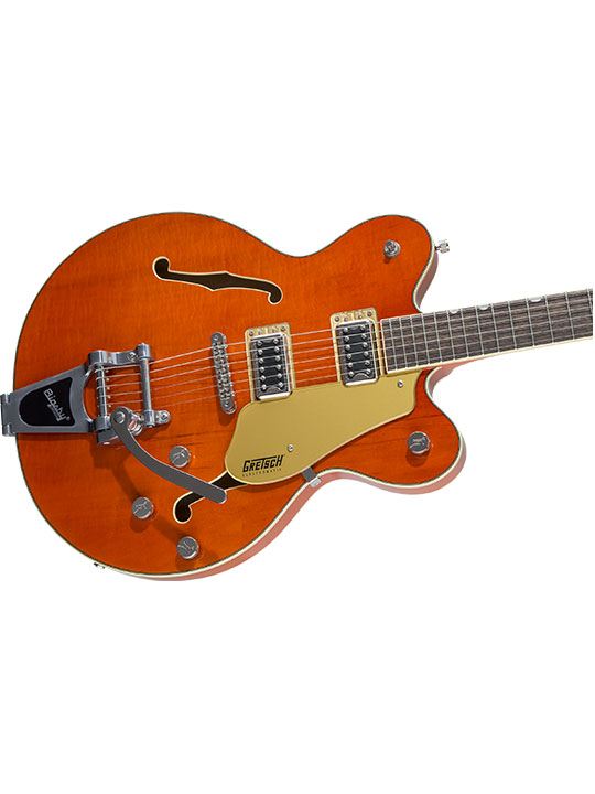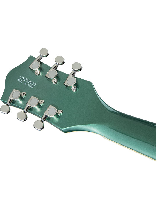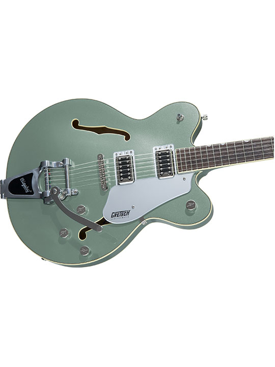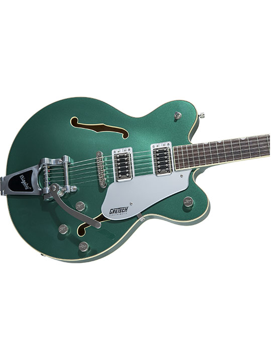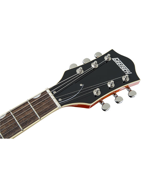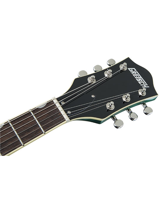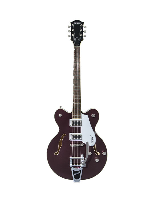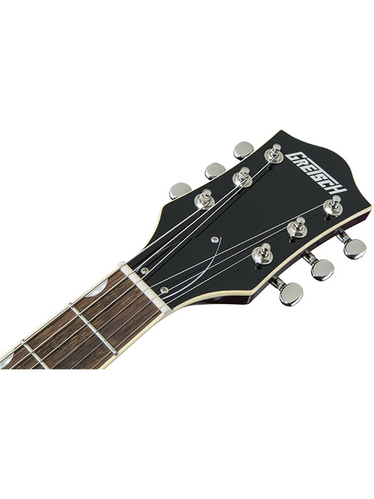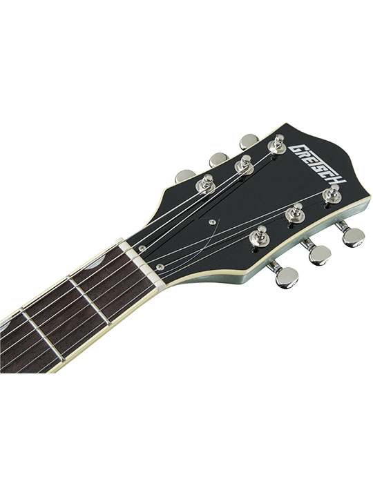 The G5622T’s other features include an anchored Adjusto-Matic™ bridge, Bigsby® B70 vibrato tailpiece, Graph Tech® NuBone® nut and G-arrow knobs.