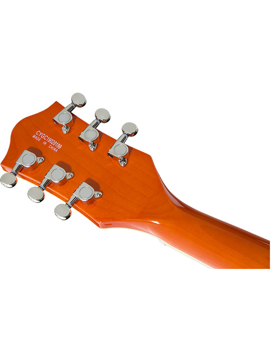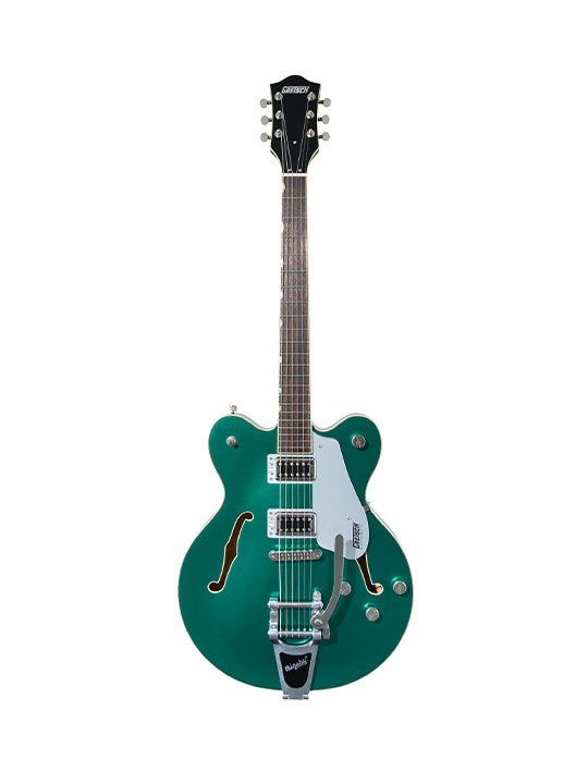 Painstakingly crafted with essential Gretsch sound, style and playability, the G5622T now comes in several remarkable finishes including Imperial Stain, Orange Stain, Single Barrel Burst (NEW) and Speyside (NEW) with gold pickguard and gold pickup bezels, or in Aspen Green, Dark Cherry Metallic and Georgia Green with silver pickguard and silver pickup bezels. All models feature nickel hardware.