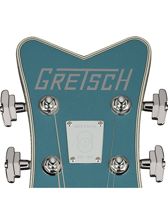 Exclusive 140th Anniversary Aesthetics The G6136T-140 features an opulent 2-Tone Stone Platinum over Pure Platinum finish, adorned with matching pickguard and pickup bezels, jeweled G-Arrow control knobs, silver sparkle binding, and a commemorative 140th Anniversary plaque on the matching headstock to create a look and style as big and unmistakable as its sound.