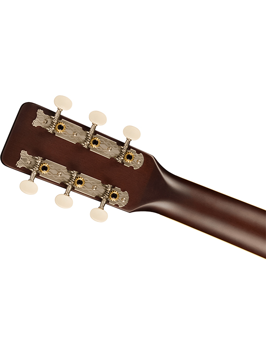 The X-braced body is crafted with select lightweight laminate tonewoods for an optimal balance of woody vintage tone and reliable durability, while the “C”-shape neck presents an inviting feel for hours of old-timey inspiration. Period-correct details such as a vintage-style pinned bridge, “G”-graphic pickguard, painted pinstripe purfling, 3-on-a-plate open-gear tuning machines and oversized dot fingerboard inlays combine for a nostalgic personality destined for any barnburner or jamboree.