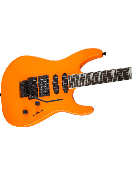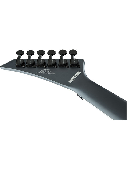 A stylishly contoured poplar body and pure Jackson neck-through-body construction ensure ergonomic comfort during long sets along with monstrous sustain and smooth playing all the way up to the 24th jumbo fret. Graphite-reinforcement rods run through the maple neck, protecting it against environmental depredations, while the ultra-fast 12"-16" compound radius bound laurel or rosewood fingerboard is built from the get-go for easy chording and riffing near the nut and rapid, fret-out-free leads as you move up the neck.