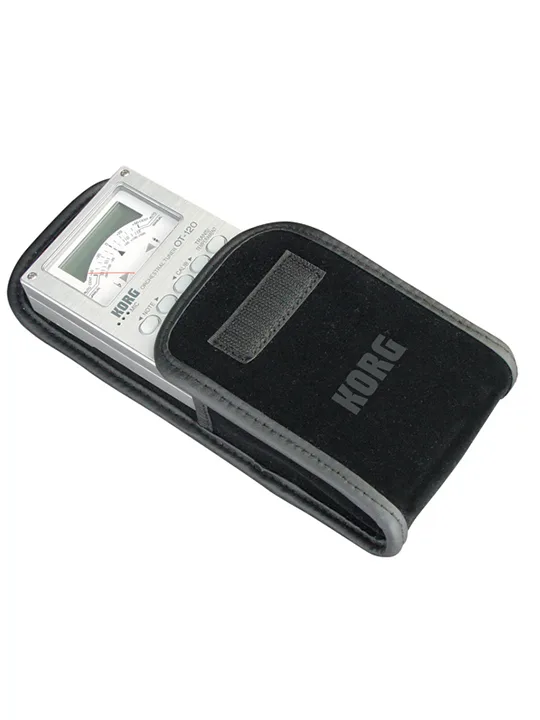 The OT-120 is a chromatic tuner intended for the orchestra, packaging high performance and sophisticated functionality in a vertical design that's easy to hold and operate. It features a dual-display, an easy-to-see needle-type indicator and a backlit LCD screen that shows the battery level, sound output level, calibration, key and note name. Additional design features include a large dial that makes it easy to select the desired mode, finger-friendly buttons and a rear-mounted stand that lets the unit stand by itself. A sophisticated silver aluminum panel contributes to its sleek, new look.